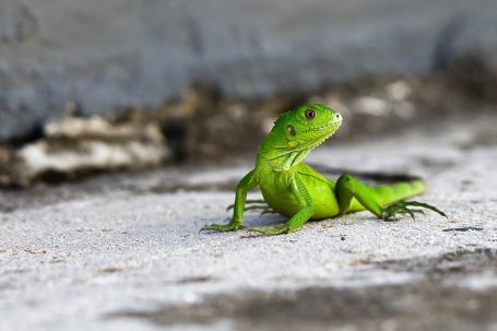 Der grünen Leguan gehört zum normalen Straßenbild auf Bonaire.