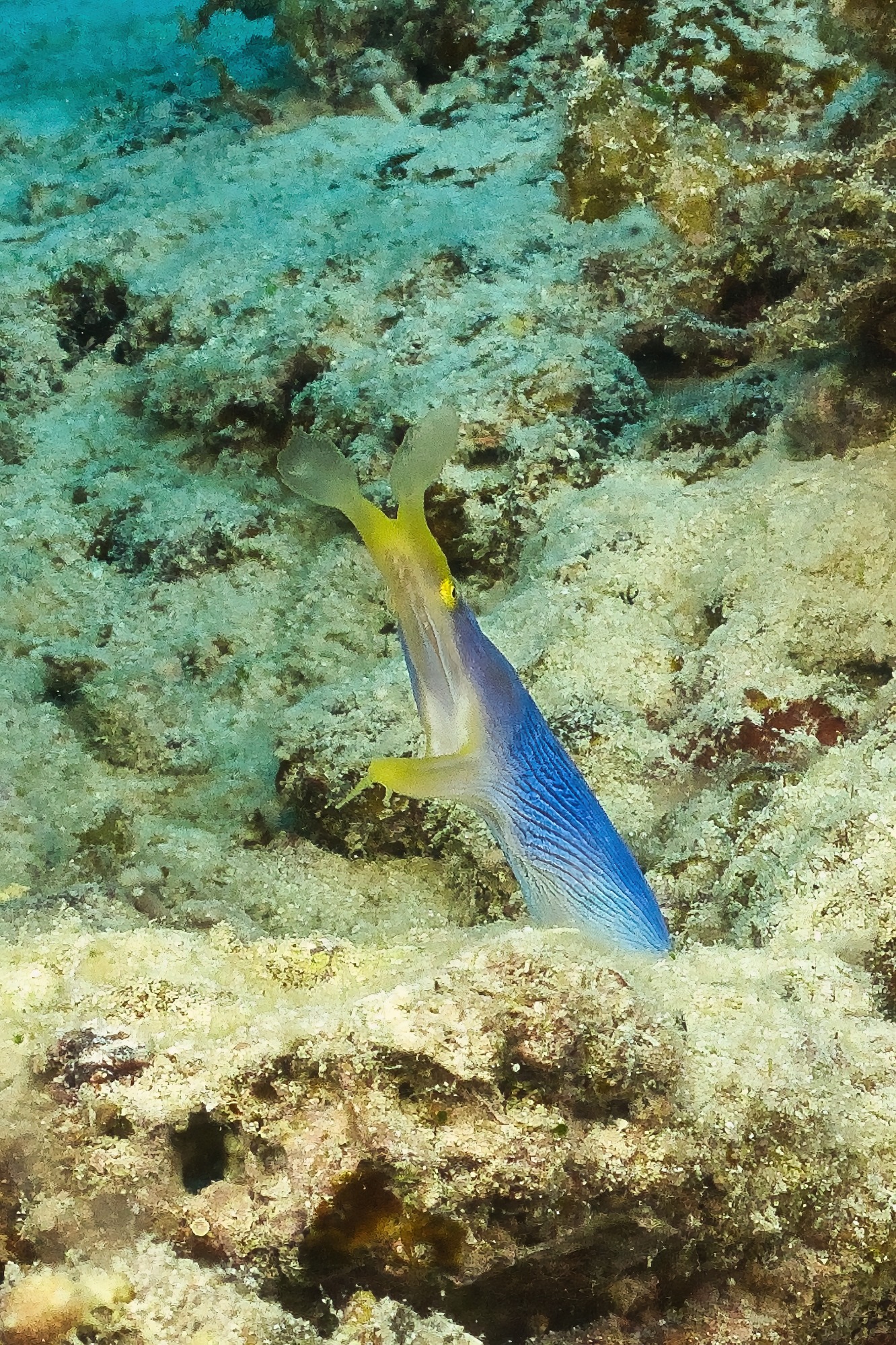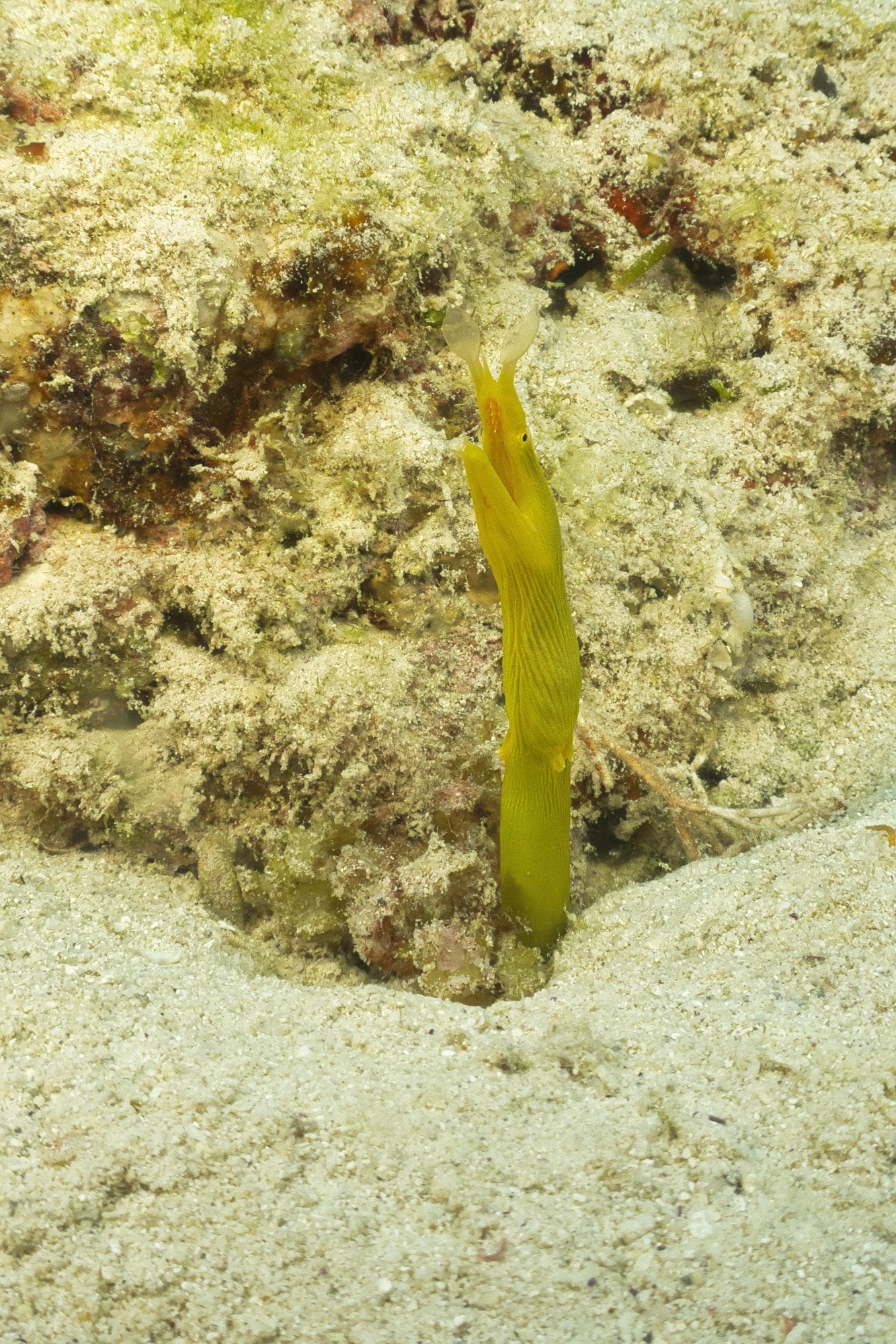 Grundeln an einer Peitschenkoralle